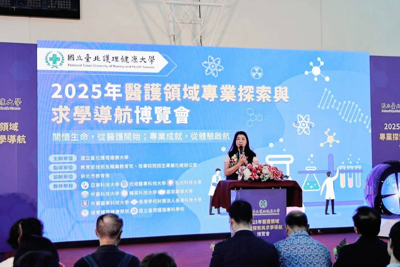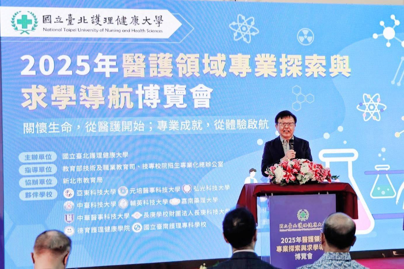為培育新世代醫護人才,實踐「向下扎根、適性揚才」的教育理念,【2025年醫護領域專業探索與求學導航博覽會】於11月8日在國立臺北護理健康大學二樓盛大舉行。本次博覽會由區域中心學校-國立臺北護理健康大學攜手醫護區10所夥伴學校共同主辦,吸引超過300名國中、高中職及大專學生、家長與民眾熱情參與。北護大勉勵同學們透過本次博覽會,不僅瞭解醫護專業的多元面向,也能感受大健康產業的溫度,從中找到職涯適性發展的志業。
