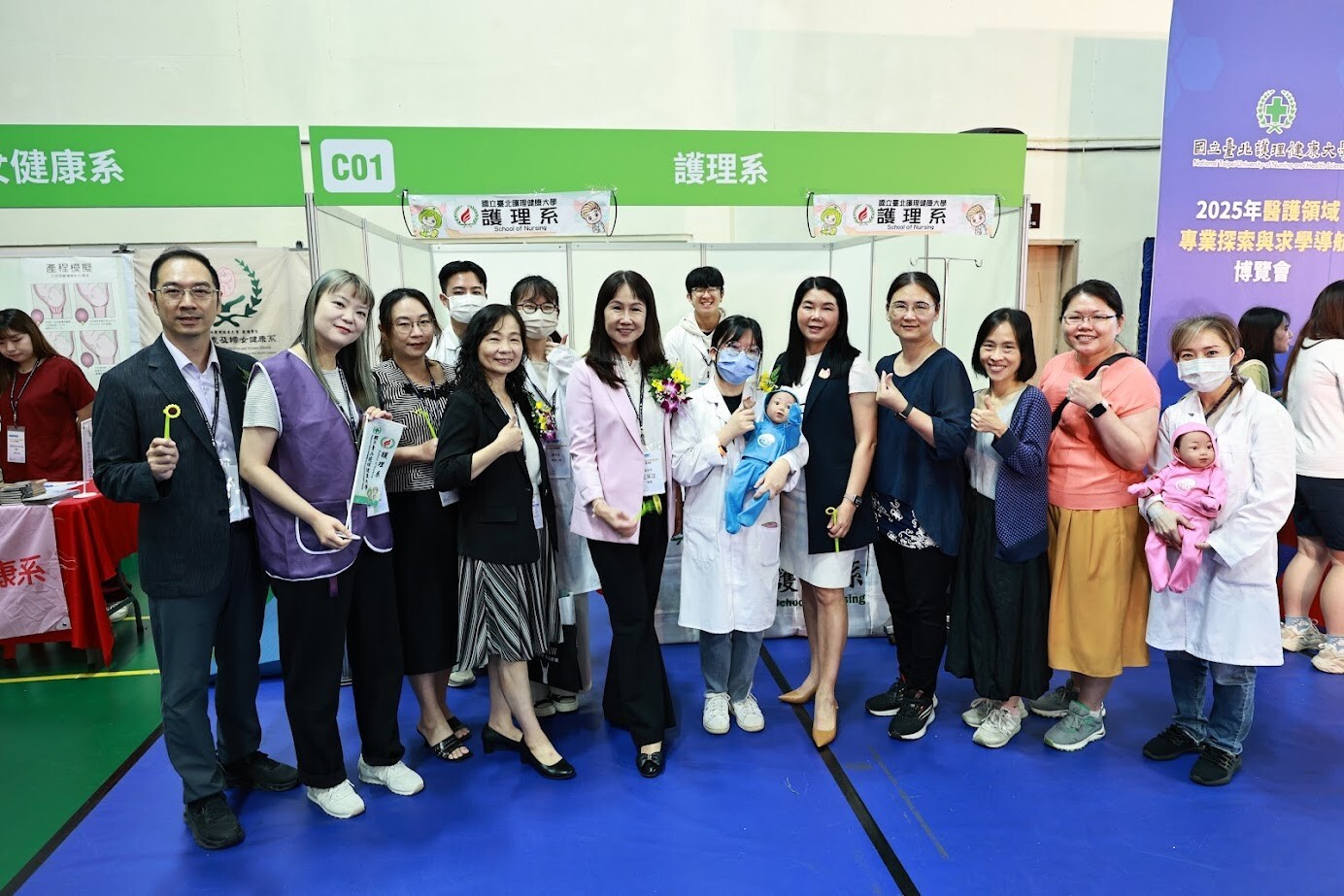 3. 北護大十二系暨實務能力鑑定中心展區:展現本校教學特色、跨域成果與專業技能訓練,涵蓋護理系、護理助產及婦女健康系、醫護教育暨數位學習系、高齡健康照護系、健康事業管理系、資訊管理系、長期照護系、休閒產業與健康促進系、語言治療與聽力學系、嬰幼兒保育系、運動保健系、生死與健康心理諮商系、專業實務能力鑑定中心照等多元領域,體現完整的醫護暨大健康產業的教育規劃。
