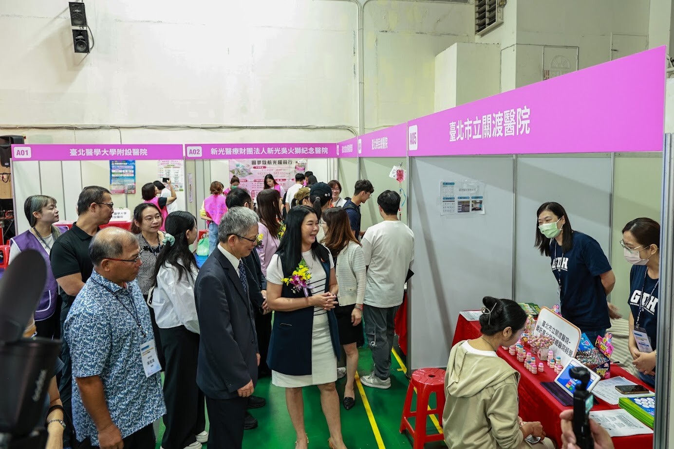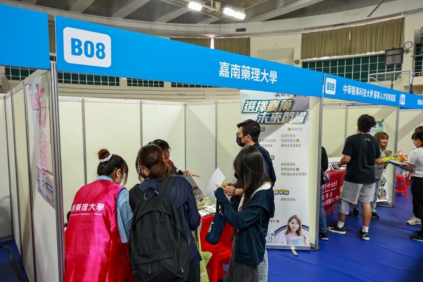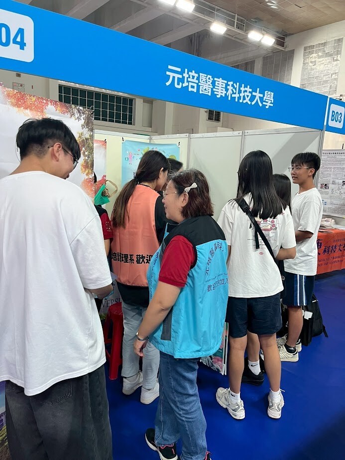 2. 醫護校院展區:聚合德育護理健康學院、亞東科技大學、長庚科技大學、元培醫事科技大學、弘光科技大學、中臺科技大學、國立臺南護理專科學校、嘉南藥理大學、中華醫事科技大學、輔英科技大學、台南應用科技大學、慈濟大學、國立臺中科技大學、大仁科技大學等14所全醫護大專校院,提供升學諮詢與學系特色介紹,協助學生探索未來方向。