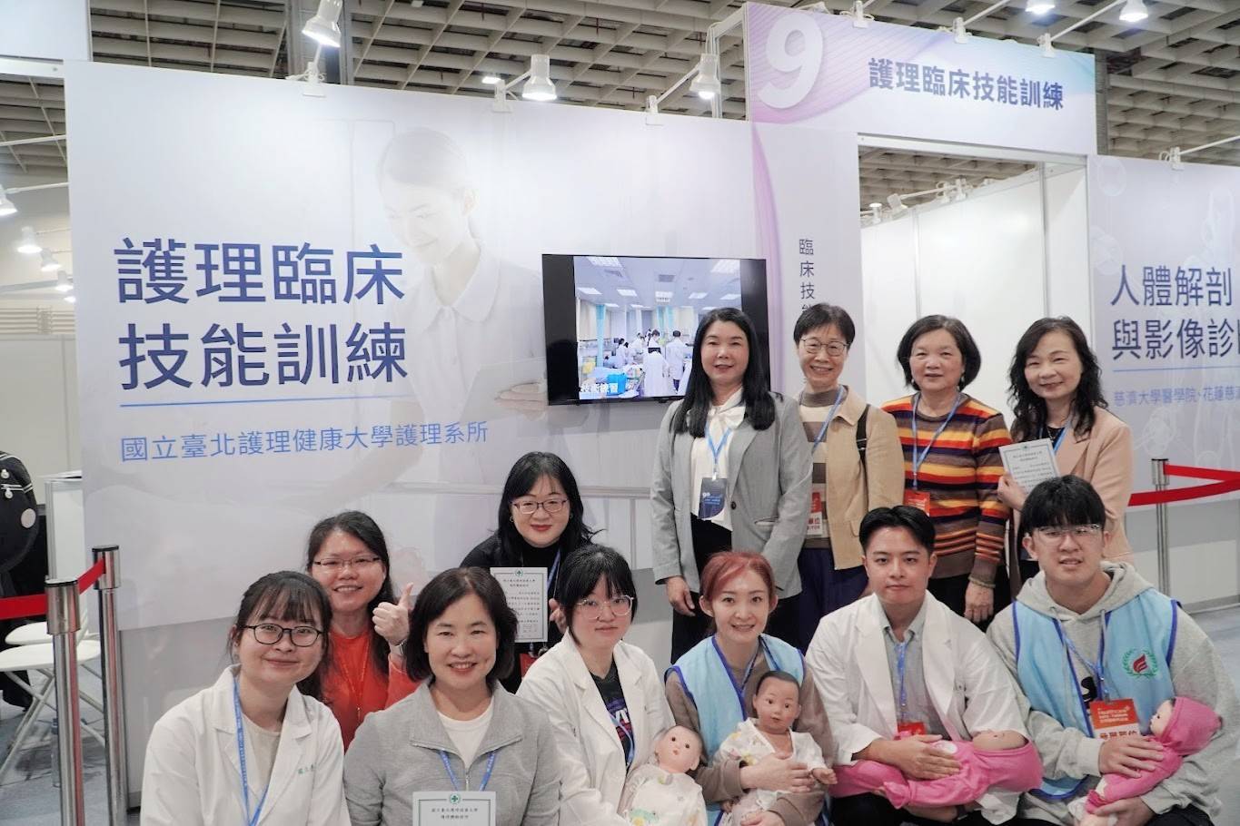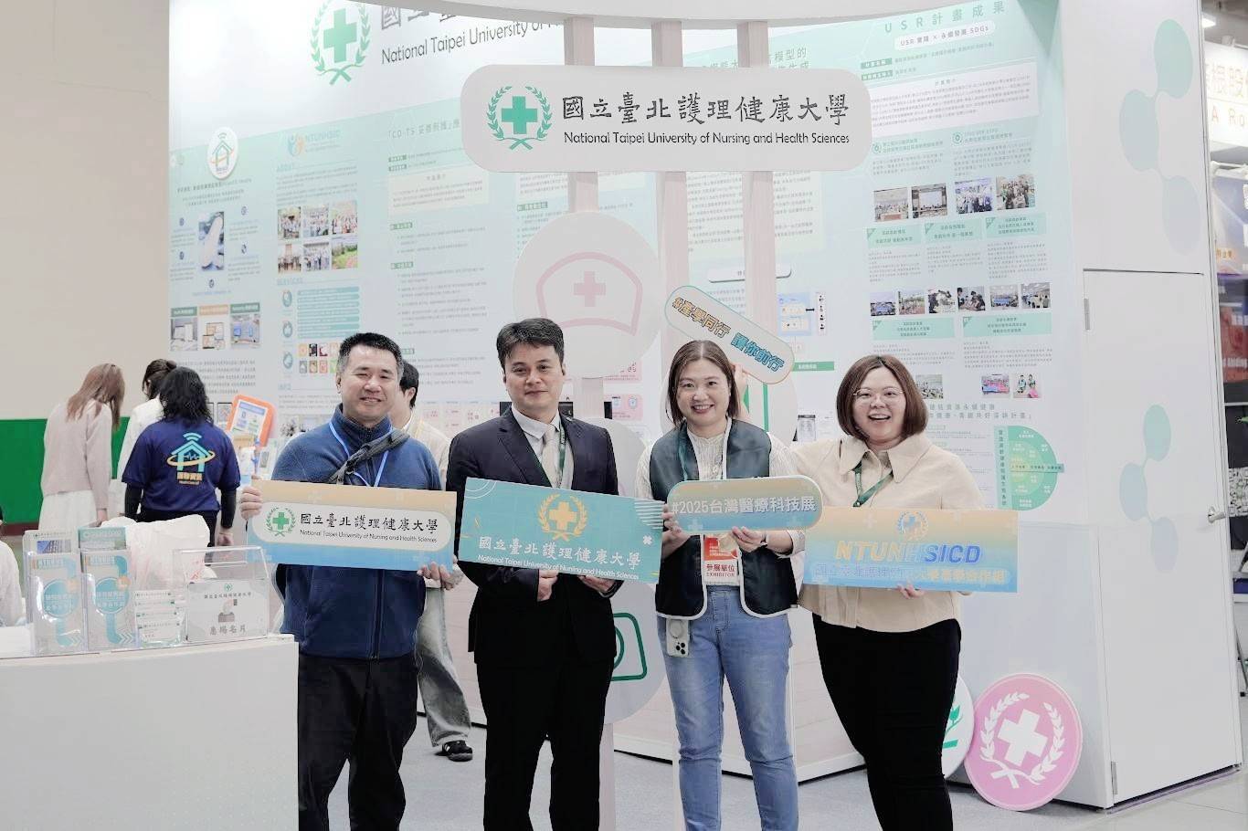 2025年第九屆臺灣醫療科技展於12月4日至7日在臺北南港展覽館一館盛大登場。國立臺北護理健康大學以雙攤位參展,一為研發處主責、設於「全齡健康展區」,另一為護理系受邀於大會規劃之「臨床技能訓練教室」展出。展期間深受專業人士與民眾肯定,充分展現北護大堅實的研發實力與卓越的教學能量。