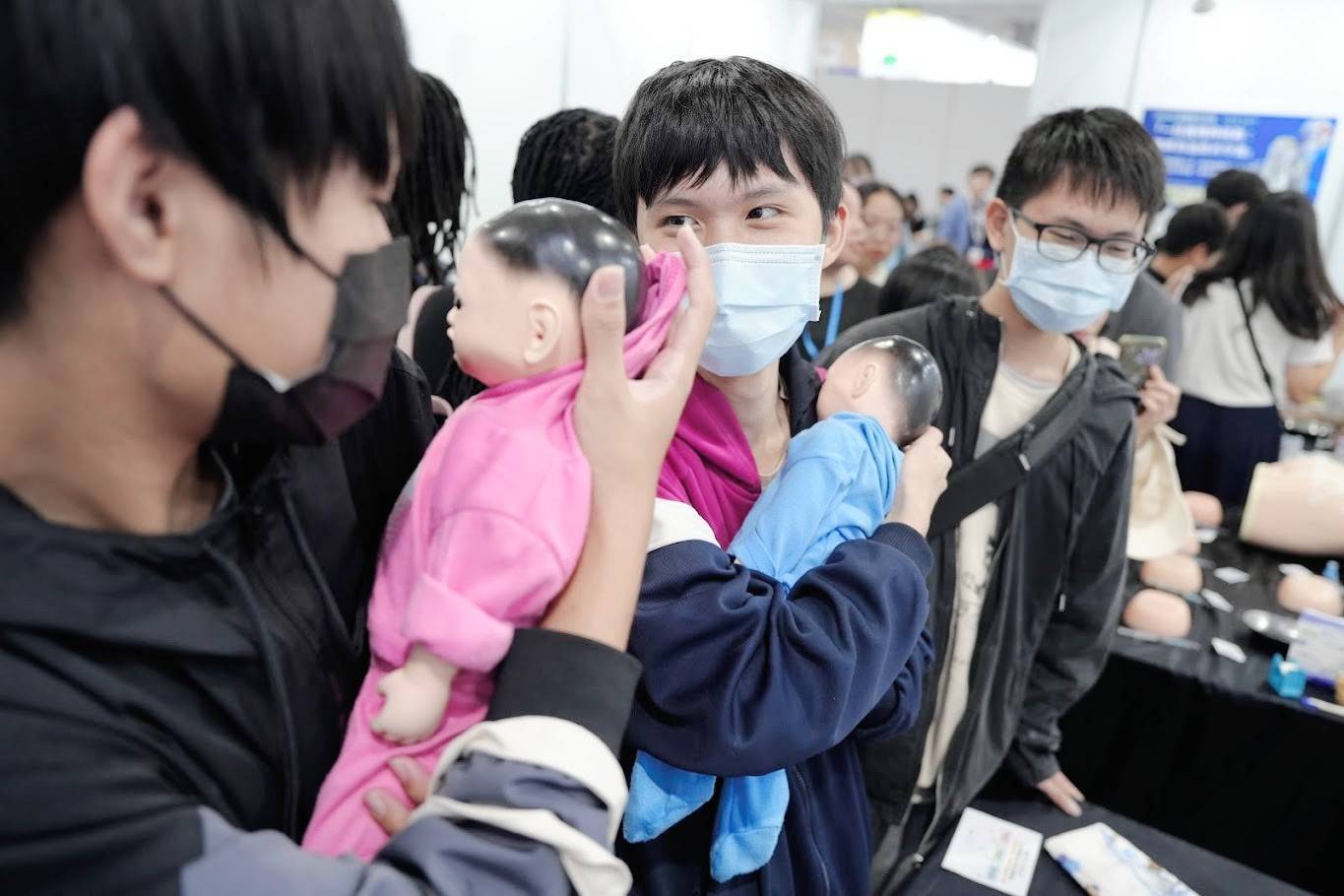 在教學實作體驗部分,護理系以「一日護理師挑戰:從精準到溫柔的守護」為主題,規劃點滴加藥、肌肉注射、嬰兒與兒科護理等多項體驗活動。每日自開放入場起至展覽結束,現場皆可見長長人龍,盛況空前。其中,有首次接觸嬰兒照護的高中生,在體驗嬰兒模型哺育與照護過程中,在學生講解下逐漸掌握技巧,直呼「人生第一次抱嬰兒好緊張」,並表示透過本次體驗更認識北護大,也期待未來有機會成為北護的一份子。