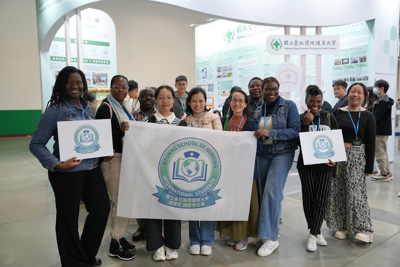 護理系黎靜婷助理教授(右一)帶領北護大國際生參與2025臺灣醫療科技展