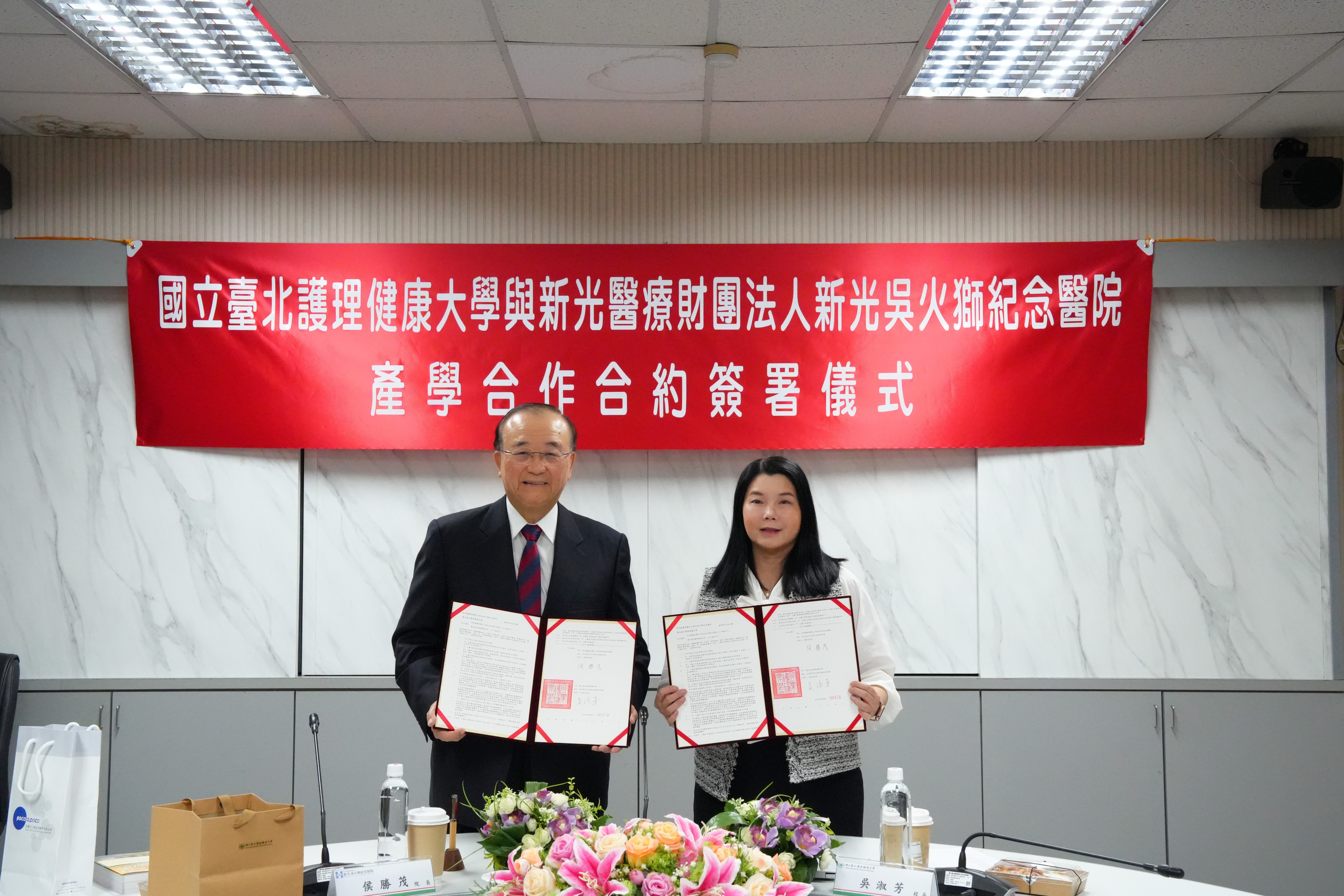 2026年3月17日,國立臺北護理健康大學與新光醫療財團法人新光吳火獅紀念醫院於校內舉行產學合作簽約儀式,象徵雙方合作關係再升級,正式邁入下一個十年夥伴里程碑。新光醫院長期深耕臨床醫療與創新發展,具備豐富醫療量能與專業實力;北護大為國內健康照護領域重要學府,致力培育高素質醫護人才。透過此次合作深化,雙方將整合資源,強化人才培育與實務訓練,攜手提升整體醫療服務品質。