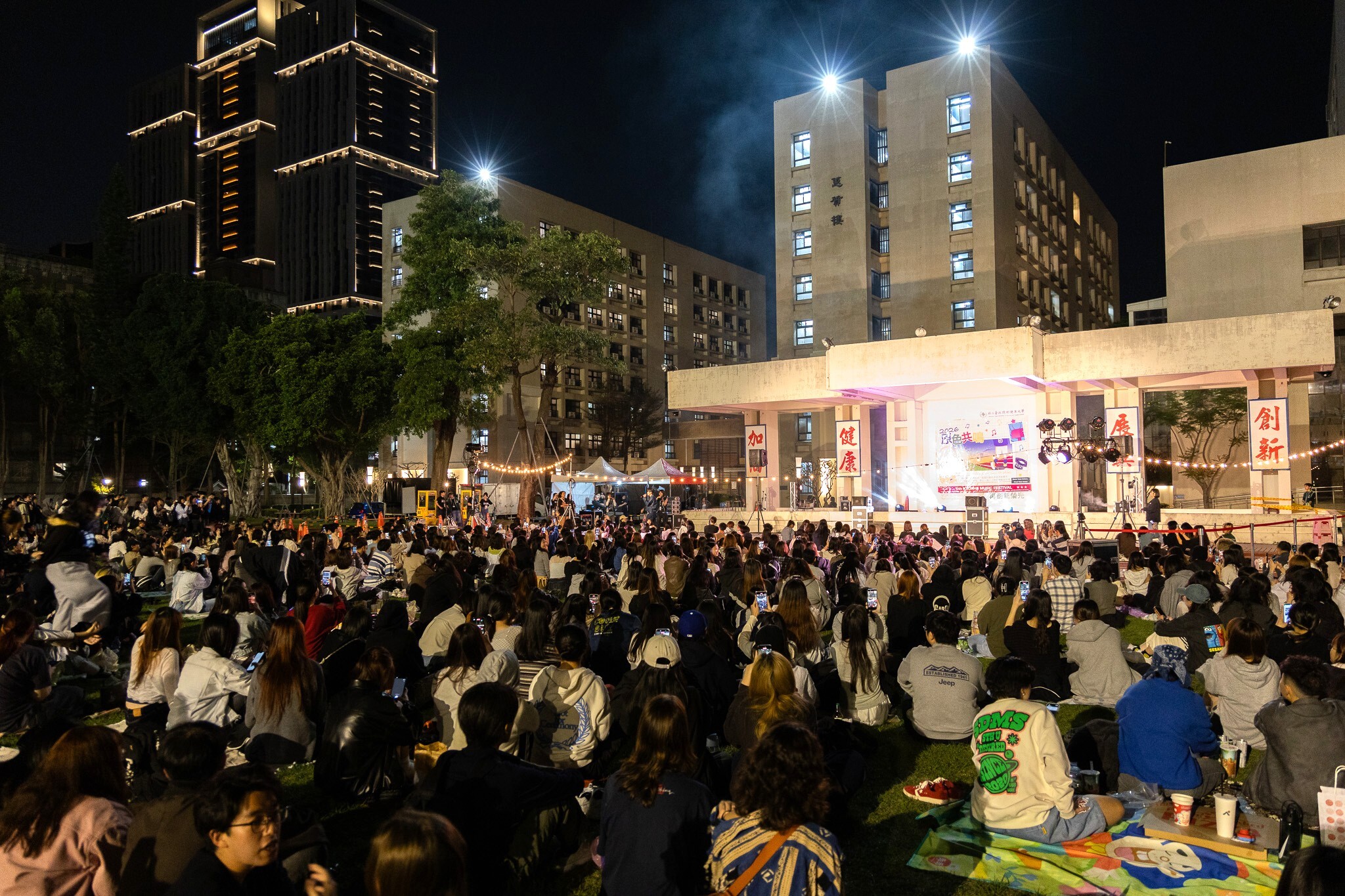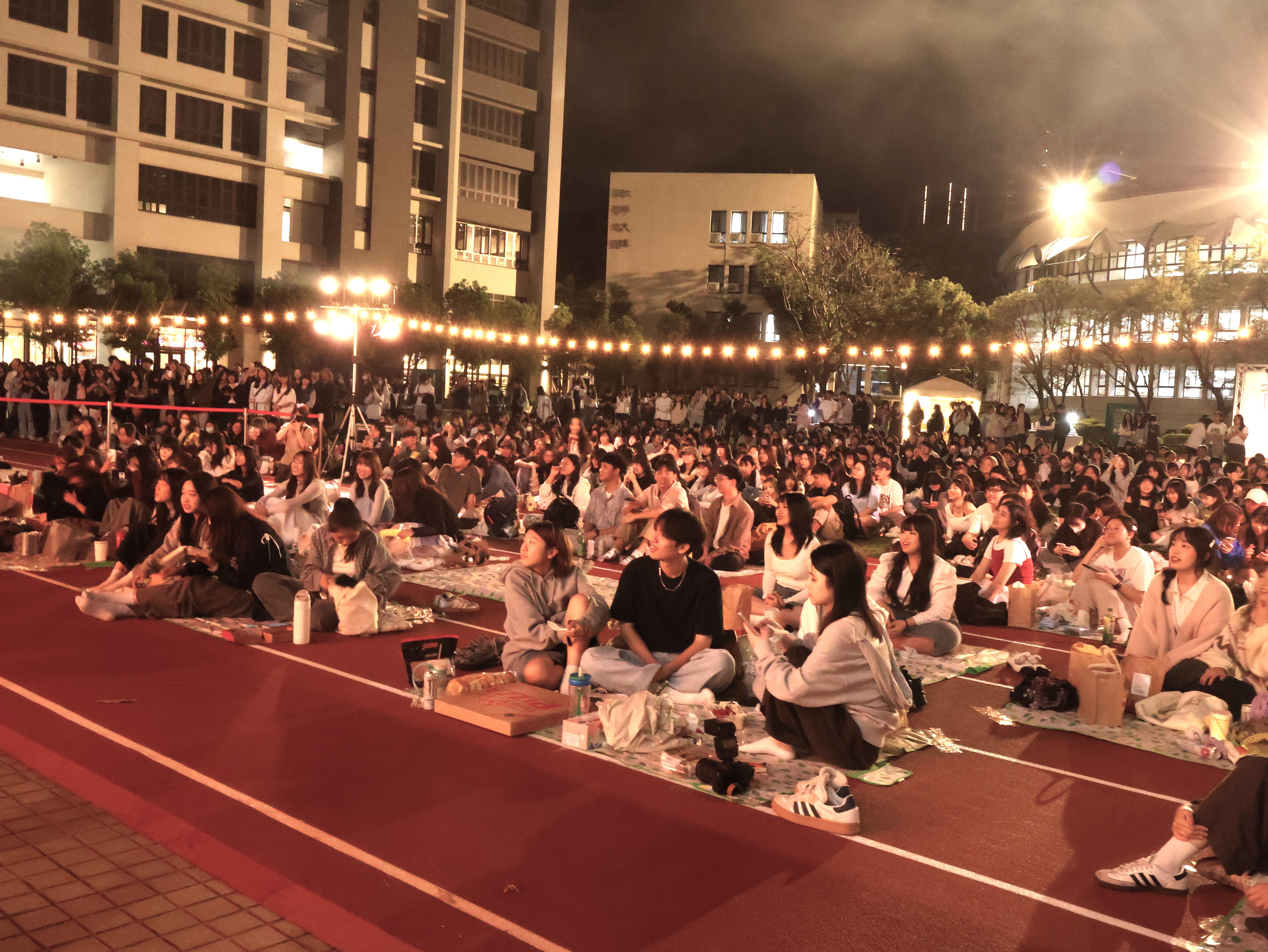 學生們席地而坐享受音樂節氛圍