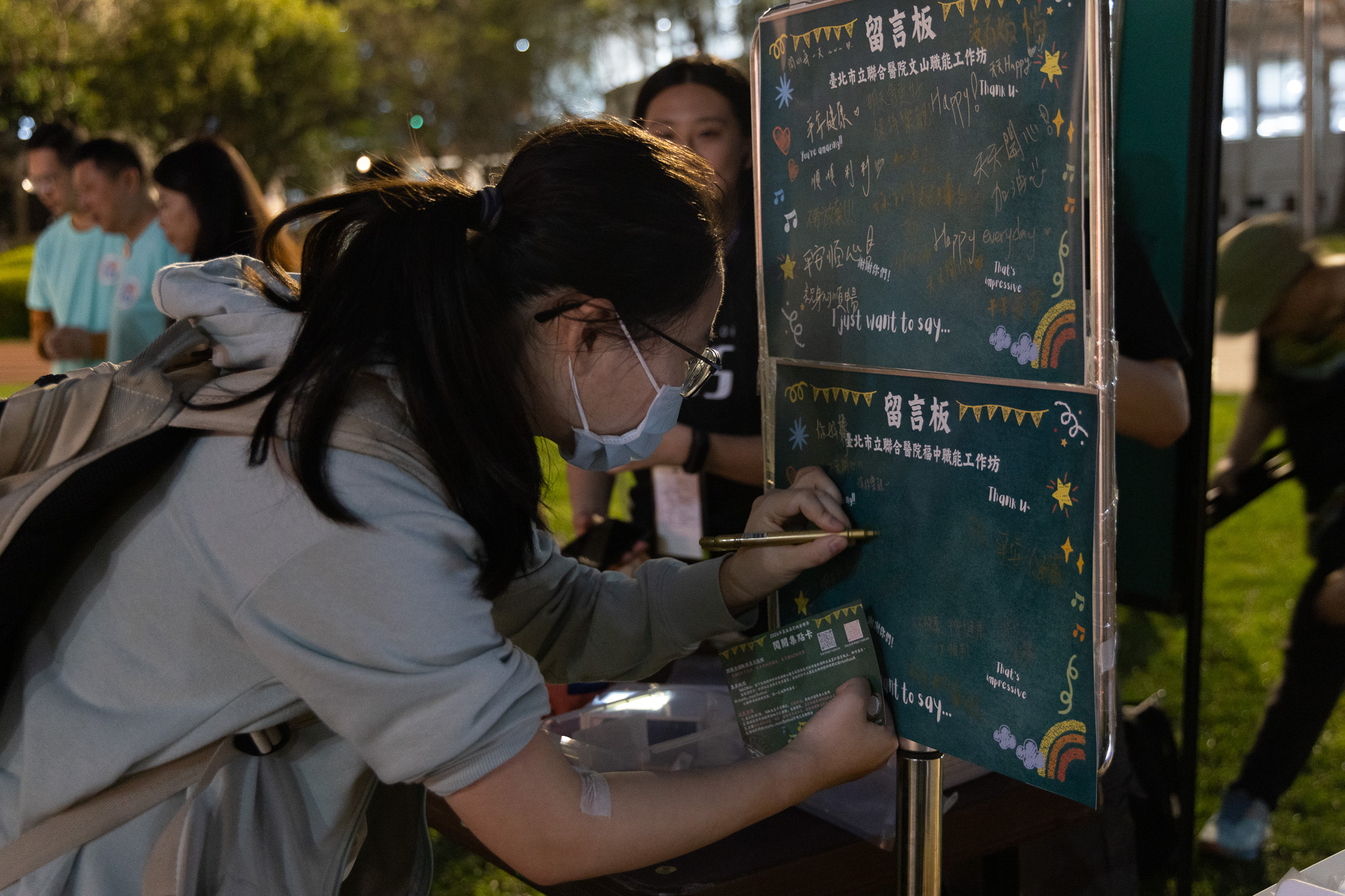 學生在暖心留言板上以文字與行動表達支持NGO