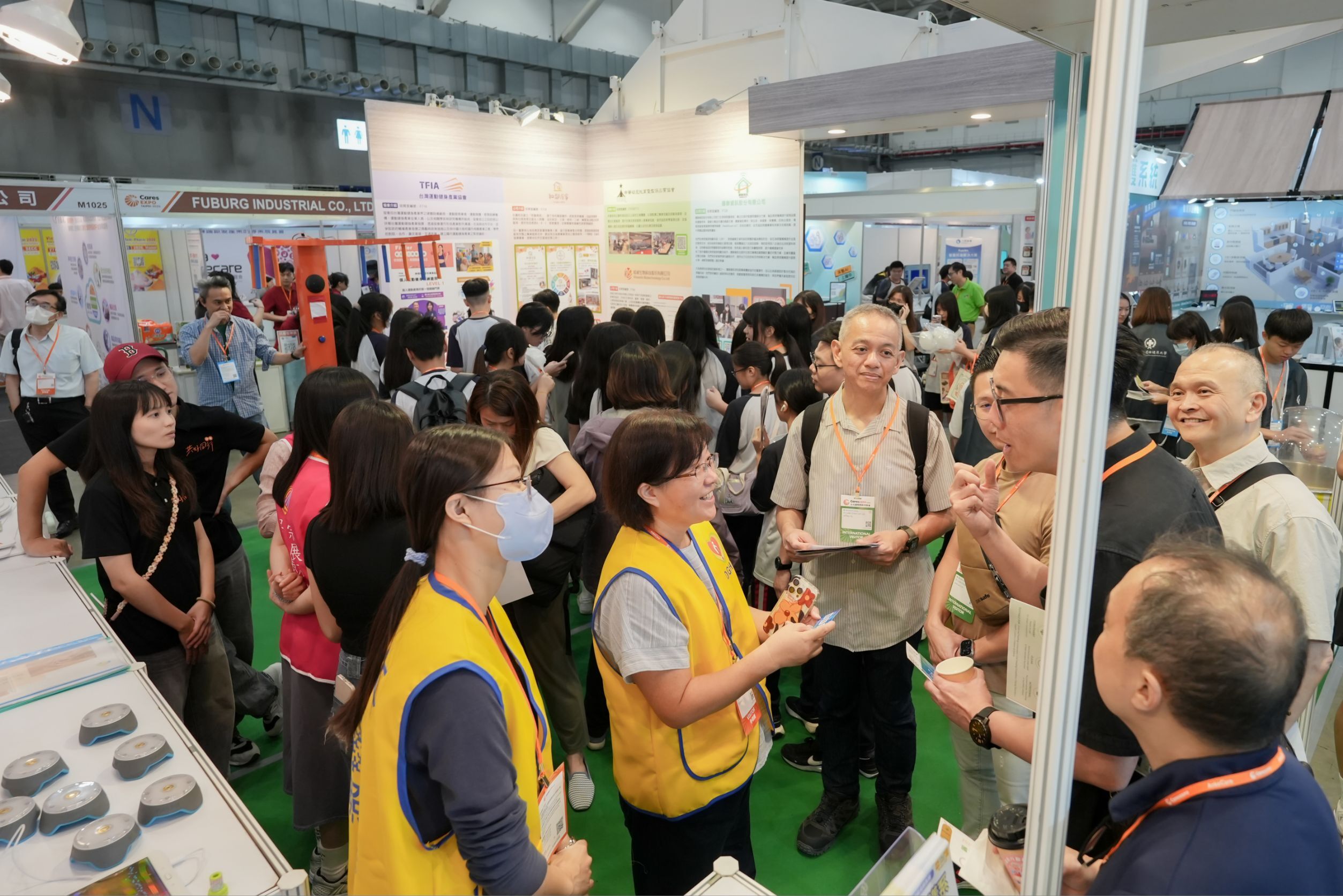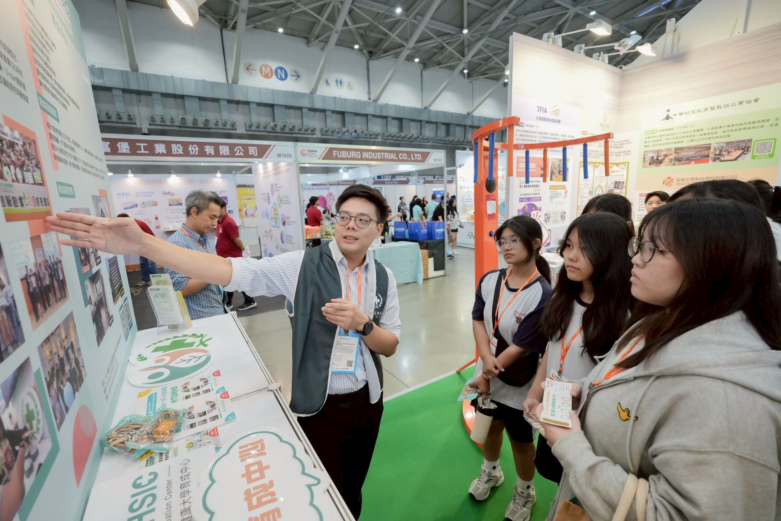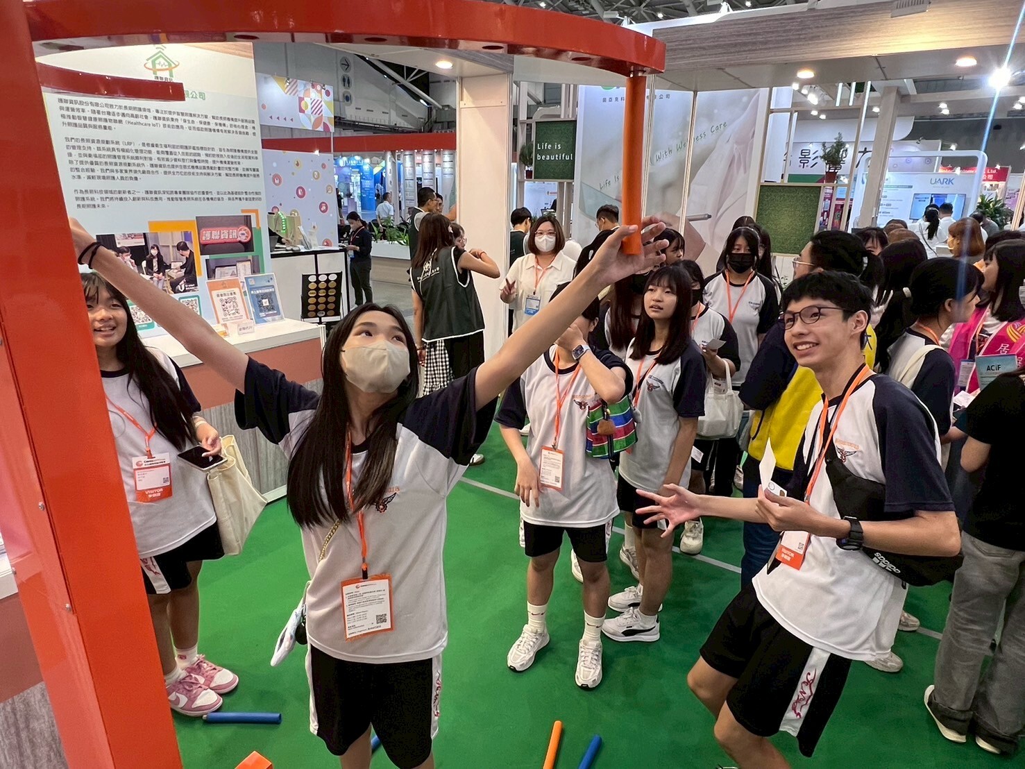 於產學合作推動與高齡健康照護人才培育展區方面,北護大以多元合作模式呈現產學合作技術轉移與學生實習成果,積極促進產官學研交流與鏈結,彰顯學生於實習中磨練專業技能,廠商亦能結合校內研發資源提升技術與創新能力,展現北護大在產研量能及人才培育的具體成效。同時,由本校高齡健康照護系與NPO實習機構夥伴(伊甸社會福利基金會、愛馨集團及宗展股份有限公司)合作,透過專業導覽說明與互動展示,一同推廣「活躍老化、在地老化」理念,結合智慧科技及高齡照護教具,深化社會對高齡健康的理解與實務應用。