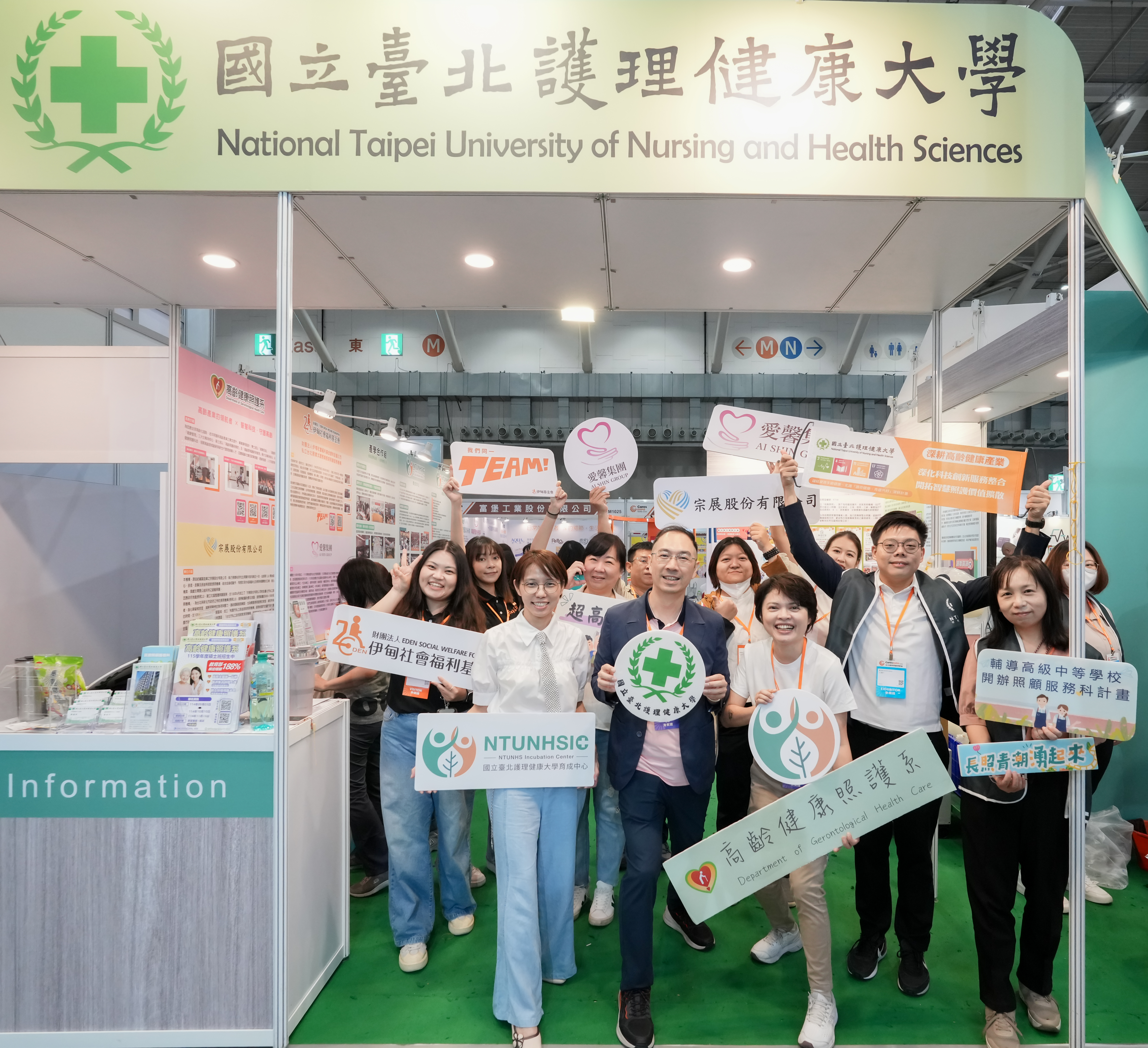 國立臺北護理健康大學以大學社會責任實踐計畫(USR)主軸四「深耕高齡產業創新」為核心,以持續深化科技創新服務整合,結合教育、產業與社會力量,致力打造超高齡社會的永續發展新典範。本次參展由育成中心統籌策劃,整合校內資源,攜手產學合作組、高齡健康照護系、育成新創廠商及 NPO 實習機構夥伴,從四大主題全方位呈現北護大在智慧健康照護與人才培育的多元成果:智慧健康育成創業服務、健康照護產學合作中心、產學合作推動及高齡健康照護人才培育。透過為期三天展覽期間,北護大展現整合教育、產業與社會資源的創新量能,亦彰顯大學社會責任實踐的具體成果。
