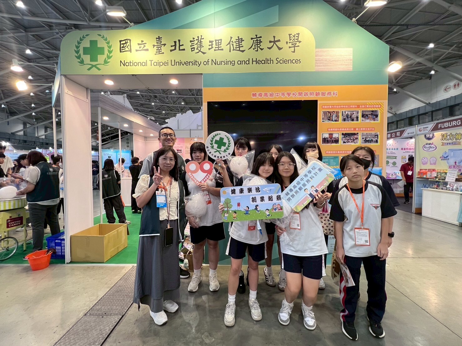 北護大健康照護產學合作中心主題展區觀展學生與參展團隊同仁合影