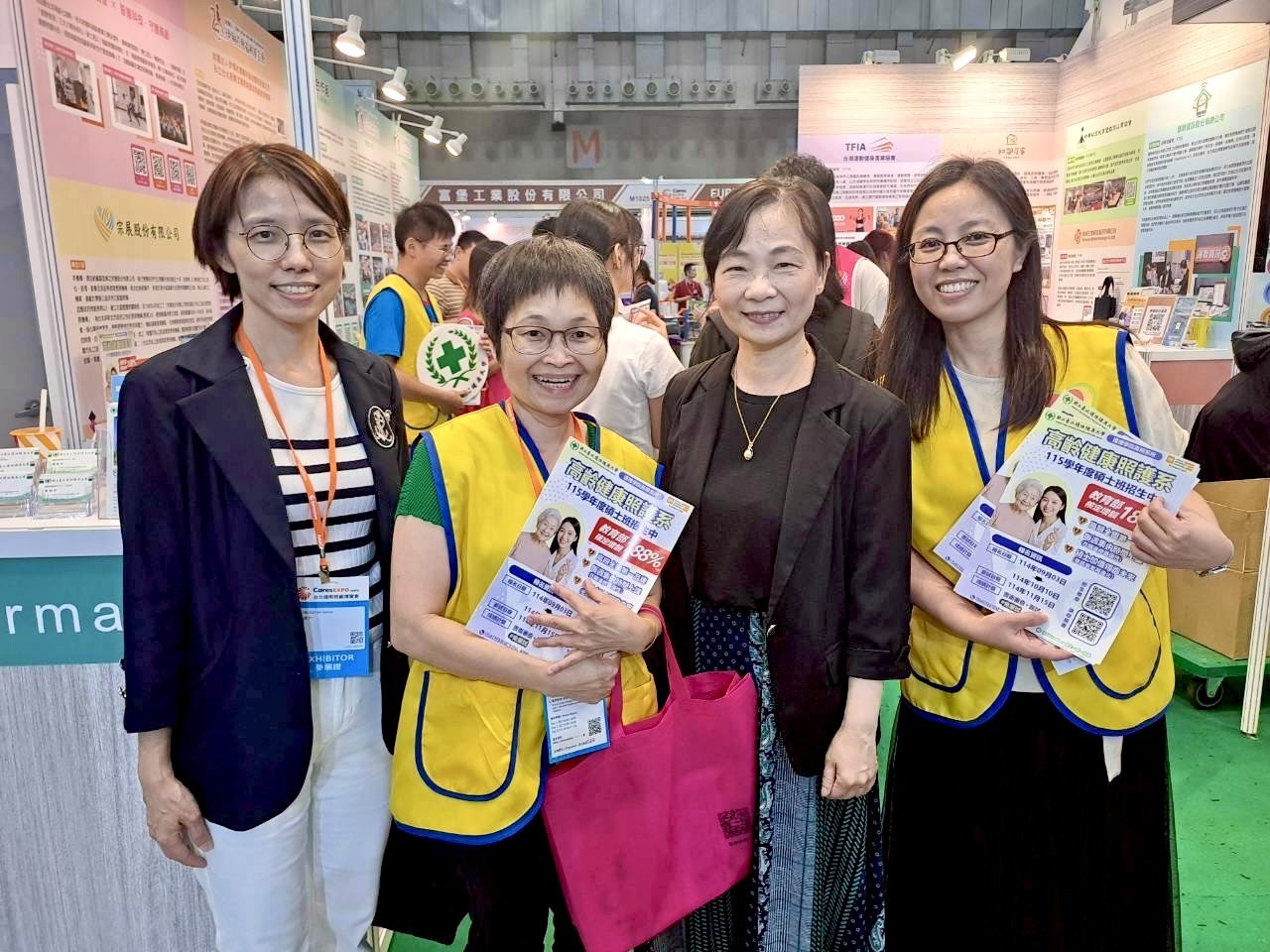 北護大高齡健康照護人才培育展區 (左起: 北護大育成中心陳書毓主任、高照系郭麗敏主任、研發處盧玉嬴研發長、高照系彭晴憶老師)