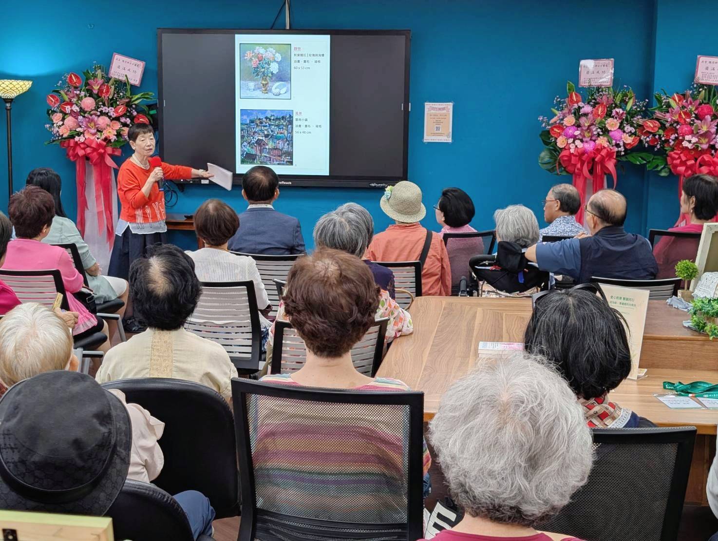 北護大校友會與圖書館合辦魏雪卿學姊油畫個展,雪卿學姊表示退休後醉心於油畫之美,作品體現一花一草一世界的深遠意境,吸引許多師生駐足欣賞,增添校園藝文氣息。校友會陳玉枝顧問談笑風生的分享,現場十分熱鬧與喜氣。